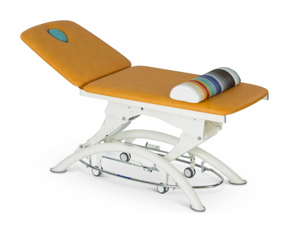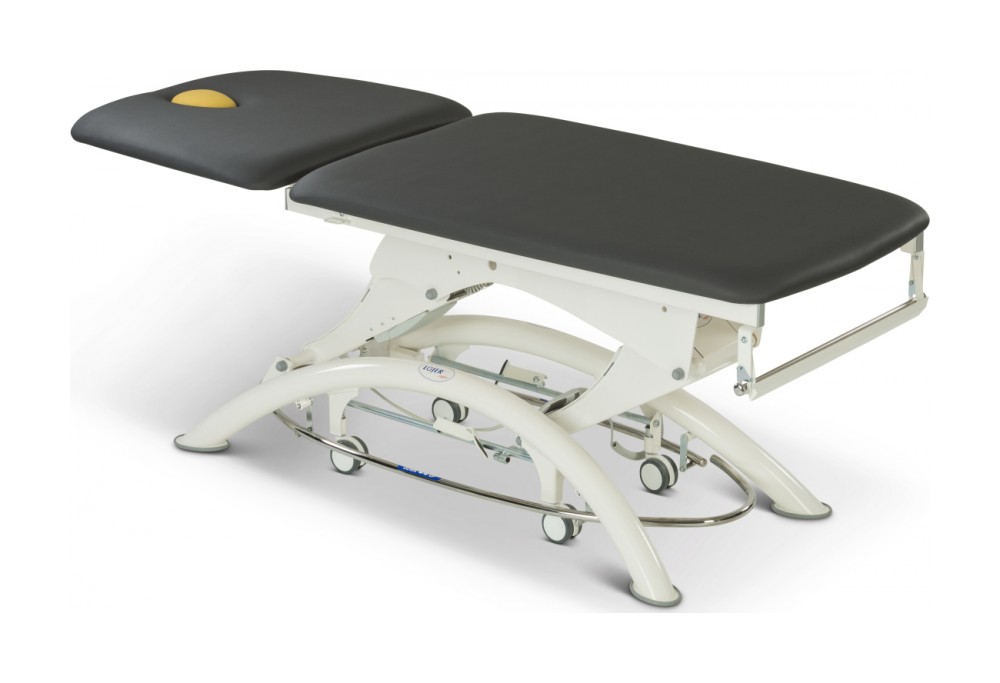 Двухсекционный массажный стол Lojer Capre F2 -длина спинной секции 75 см. -два привода (высоты и спинной секции) -электропривод высоты при помощи напольной педали -гигиеническая антимикробная обивка -без регулировки дренажного угла