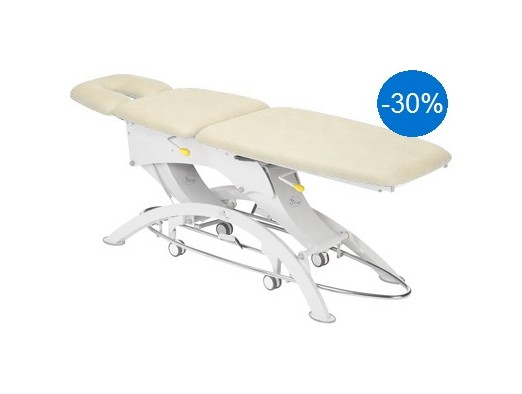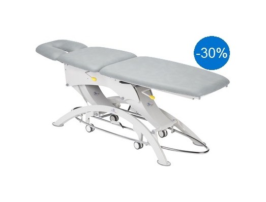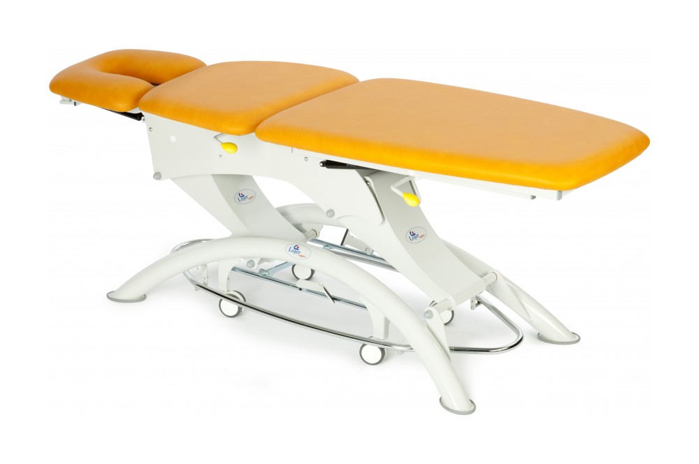| Трехсекционный массажный стол Lojer Capre F3 -электропривод высоты при помощи напольной педали -пневмопривод ножной секции - головная секция O- или U- формы - гигиеническая антимикробная обивка - без регулировки дренажного угла |