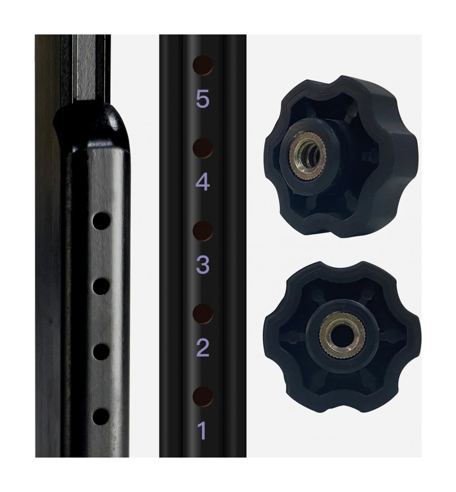 • Простая и точная регулировка высоты с помощью пронумерованных отверстий и мягких фиксирующих ручек