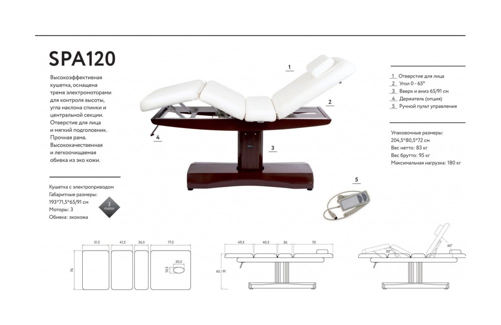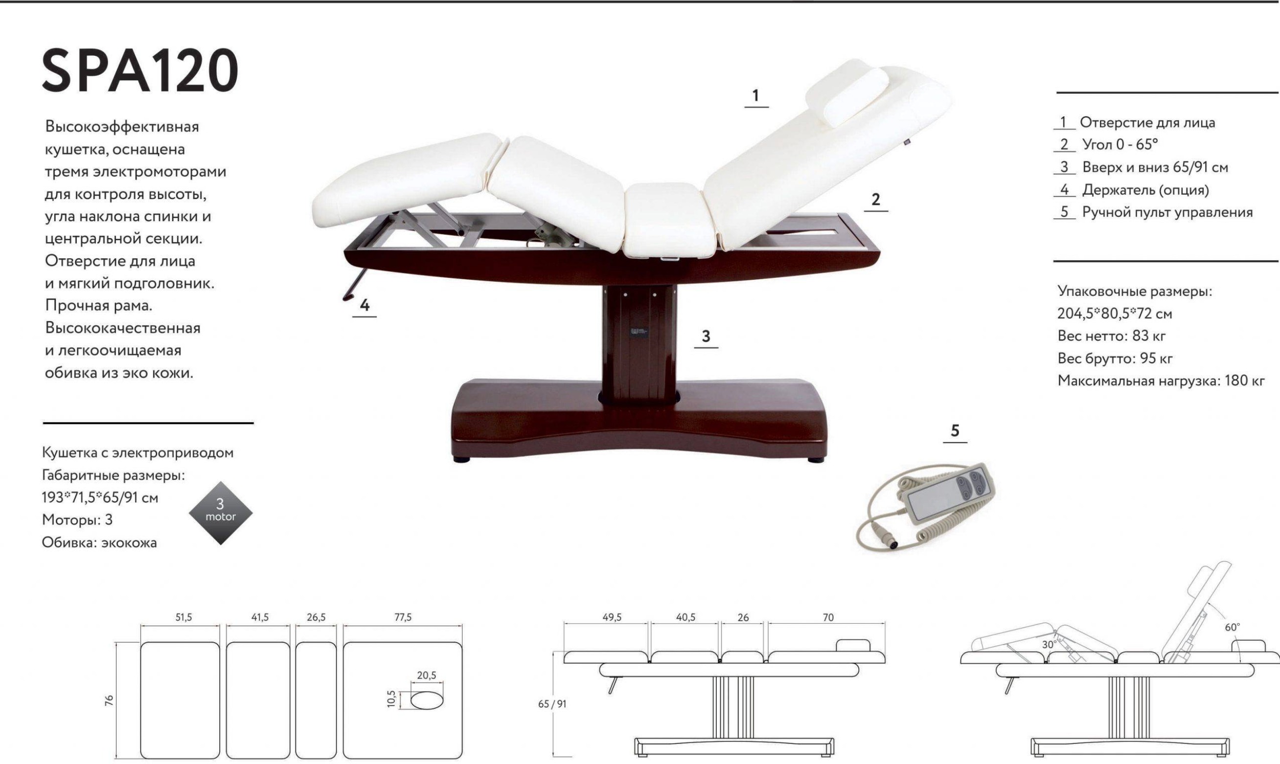 Стильная и многофункциональная кушетка для спа SPA120 станет отличным приобретением для владельца салона красоты или спа-центра! Модель изготовлена из самых современных прочных и долговечных материалов, которые устойчивы к влажности и перепадам температур – всем тем условиям, без которых не обходится ни один спа-сеанс.